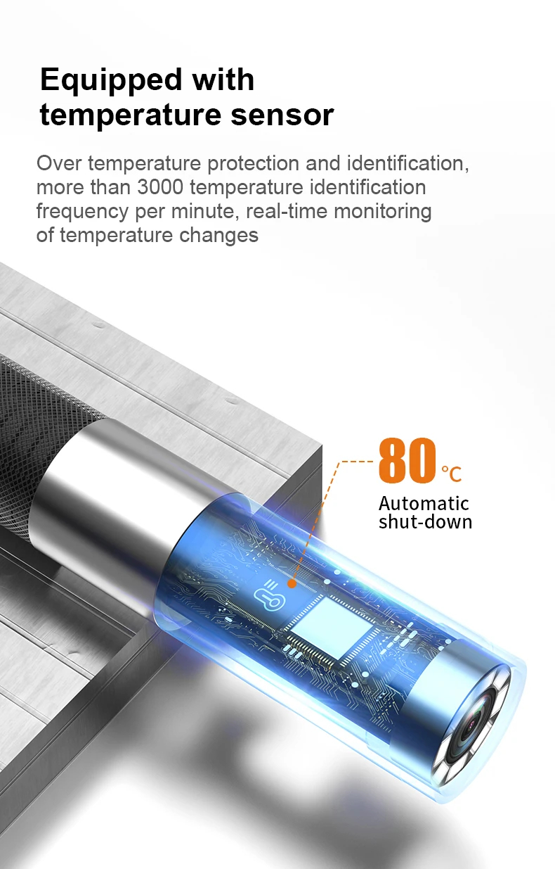 Сондата на ендоскопа е водоустойчива (IP67) и работи безпроблемна в мокри или прашни участъци. Оборудвана е с температурен сензор, който активира автоматично изключване, ако температурата достигне 80°C. Оперативният температурен диапазон варира от -10°C до 50°C. Тъмните зони се осветяват ефективно чрез интегрирани LED светлини около лещата.