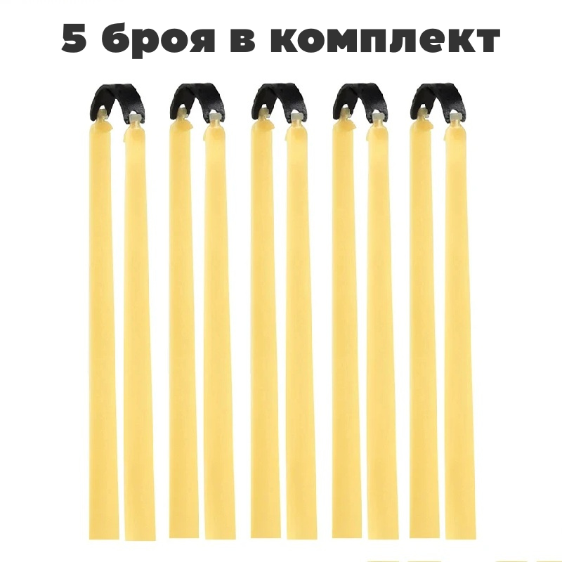 Комплектът включва 5 плоски ластика за прашка, изработени от качествен естествен каучук. Благодарение на дебелината от 2 мм, те са значително по-мощни от стандартните ленти и позволяват по-силно ускорение на сачмата и по-голям обсег на изстрела.