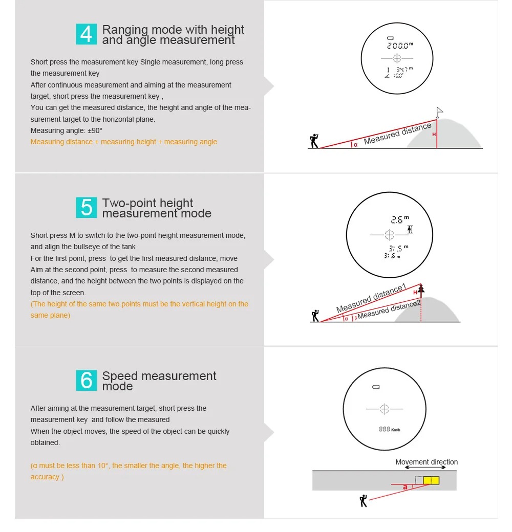 Измервайте разстояния до 600 метра с висока точност от ±0.5 м, без значение дали целта е близо или далеч. Уредът използва лазерна технология от ново поколение, за да предостави бързи и надеждни данни – идеален при лов, маркиране на цели, голф или измервания на терен.