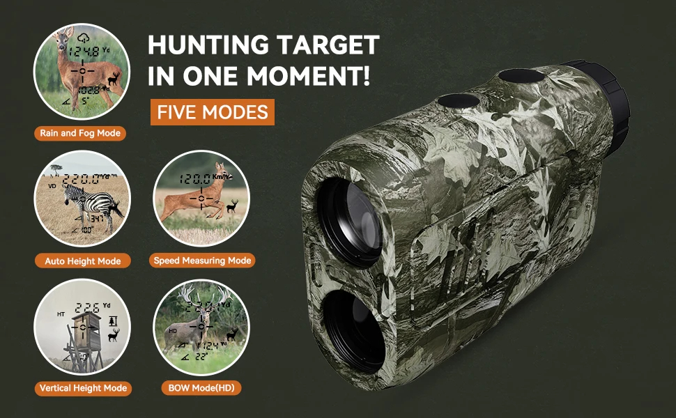 MiLESEEY PF2E предлага отлична многофункционалност при лов и стрелба, благодарение на специализирани режими: BOW режим за стрелба с лък, режим за мъгла и дъжд, вертикална и автоматична височина, както и измерване на скоростта на движещи се обекти. Идеален за използване в пресечени терени или при лов от разстояние.