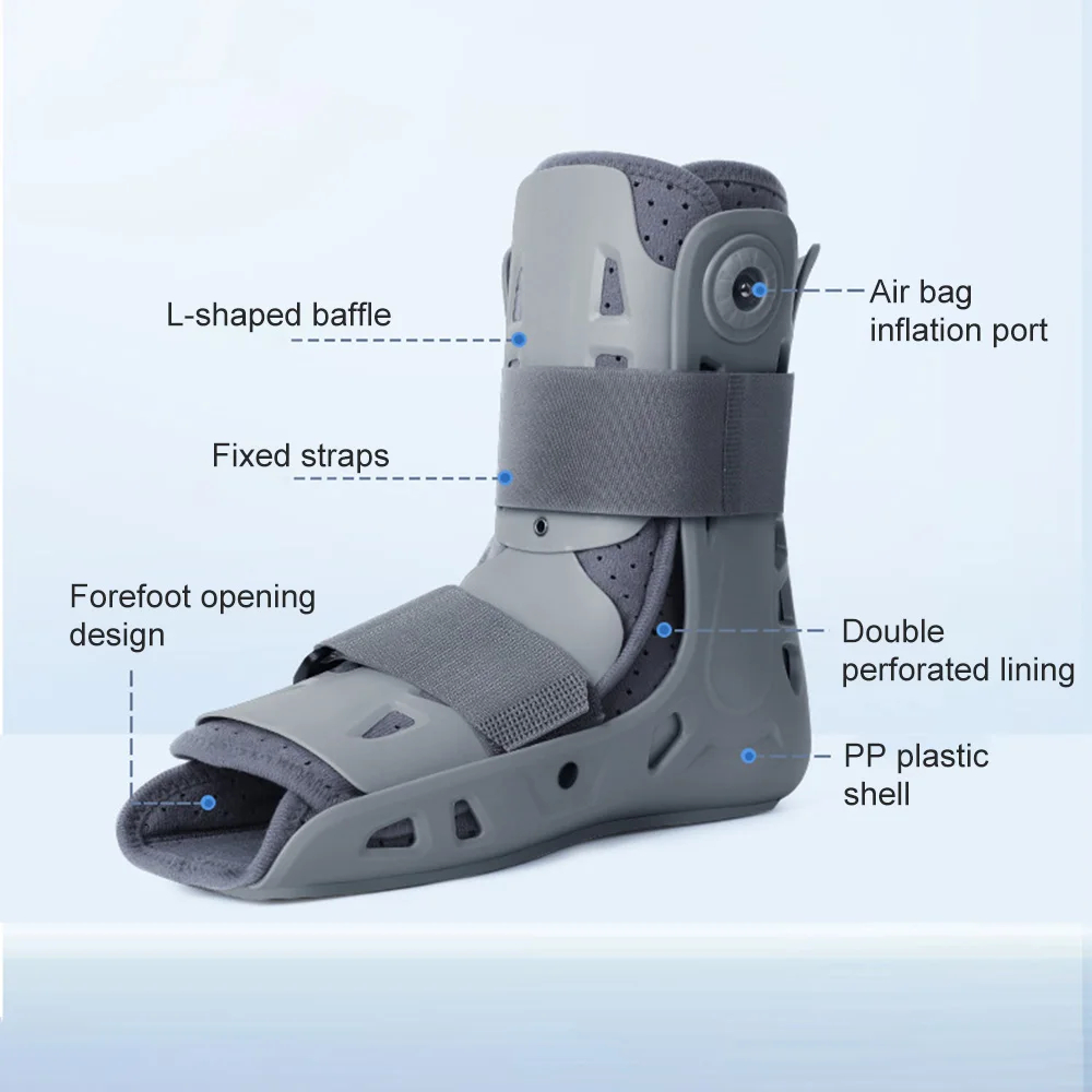 Пациенти с фрактура или травма на петата метатарзална костОртезата осигурява пълно обездвижване и защита на външната част на ходилото, тъй като твърдата подметка и 360-градусовата фиксация предотвратяват движенията и огъването на стъпалото. |