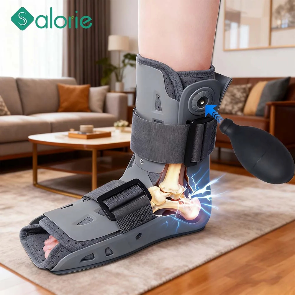 Осигурете си стабилна опора при навехнат глезен, болки в ахилесовото сухожилие или в петата (плантарен фасциит) с ортопедичният ботуш Salorie. Шината е изработена от здрава пластмаса, като стабилизацията се осъществява чрез въздушни възглавници