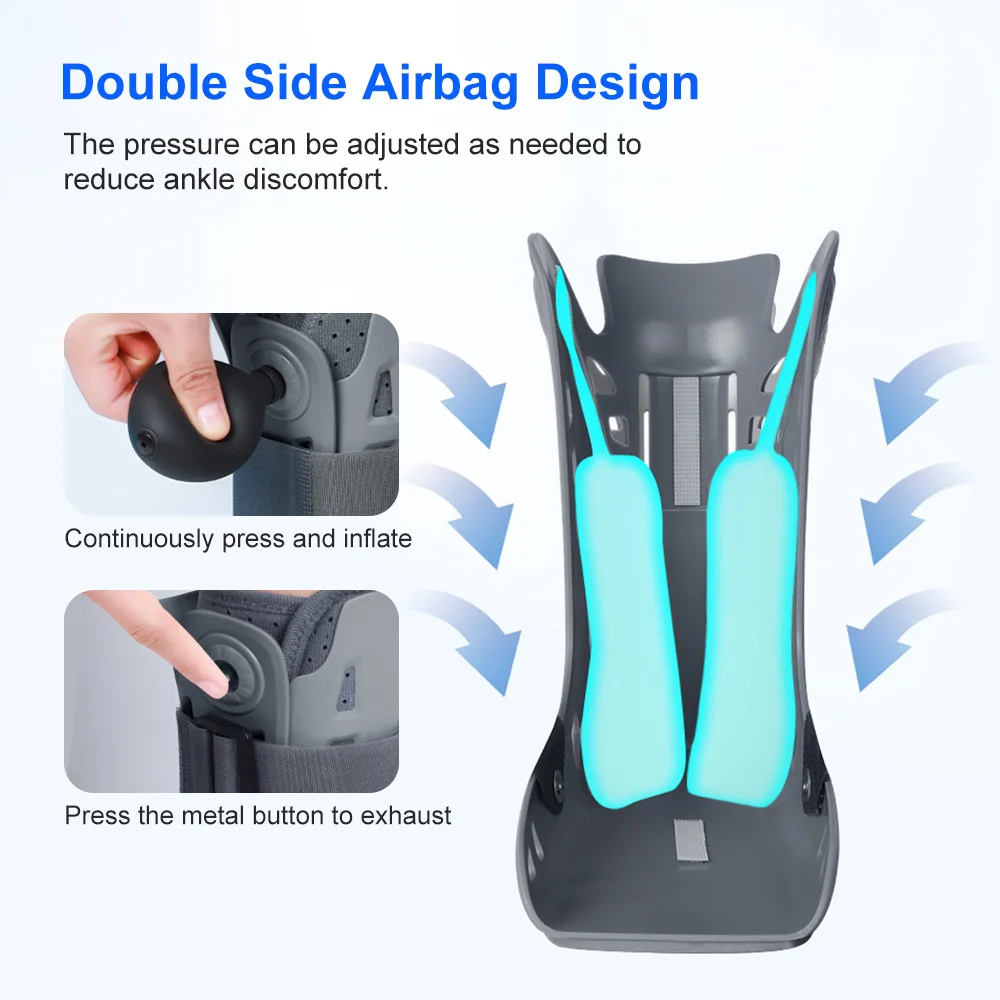 Шината за глезен има вградени въздушни възглавници от двете страни. Те спомагат за равномерно разпределение на натиска като обхващат глезена едновременно от двете страни.