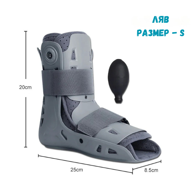Осигурете си стабилна опора при навехнат глезен, болки в ахилесовото сухожилие или в петата (плантарен фасциит) с ортопедичният ботуш Salorie. Шината е изработена от здрава пластмаса, като стабилизацията се осъществява чрез въздушни възглавници