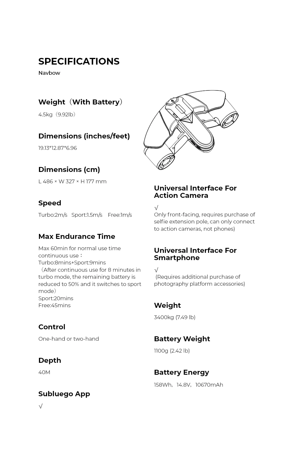 - Navbow се свързва със SublueGo App, което Ви позволява:
