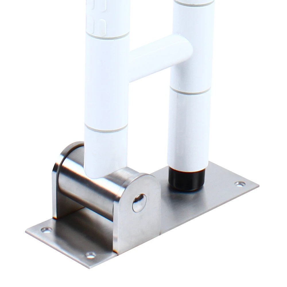Помощната дръжката е изработена от неръждаема стомана, осигуряваща висока устойчивост на влага и корозия. Външната част е покрита с бял полимерен слой с антибактериални свойства. Релефната повърхност по цялата дължина подобрява захвата и намалява риска от изплъзване на ръката.