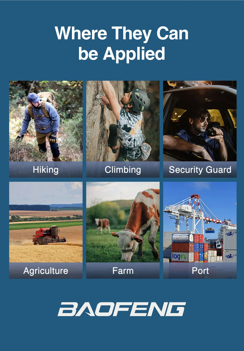 Планинари и ловциРадиостанцията е с IP67 защита, обхват до 50 км и тегло подходящо за носене, което я прави незаменима за координация в отдалечени планински терени без мобилно покритие. |
