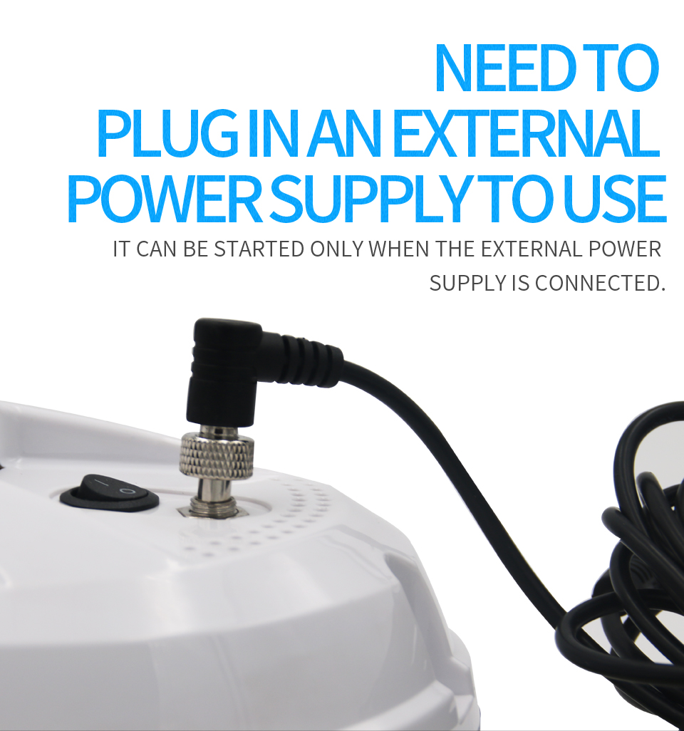 Основното захранване е от електрическата мрежа чрез дълъг кабел. Вградената батерия служи само като аварийно захранване и не е предназначена за самостоятелна работа. Съществуват акумулаторни модели без кабел, но те са рядкост и имат ограничено време на работа.