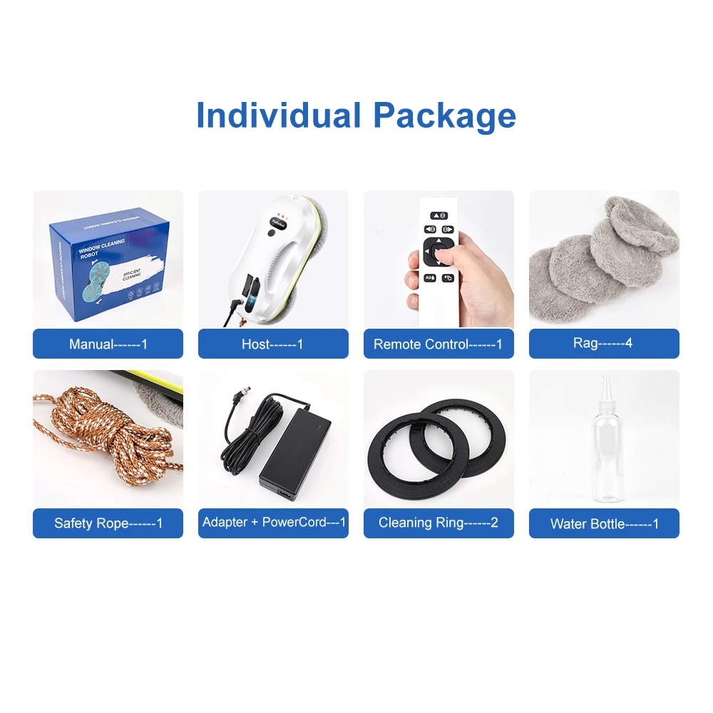 В комплекта е включен захранващ удължител с дължина 4 метра, който позволява достигане и до най-високите прозорци без нужда от използване на разклонители. Робот за почистване на прозорци с автоматично пръскане PuRuiKai 309 се поддържа лесно, като след употреба е необходимо само микрофибърните кърпи да се изперат.