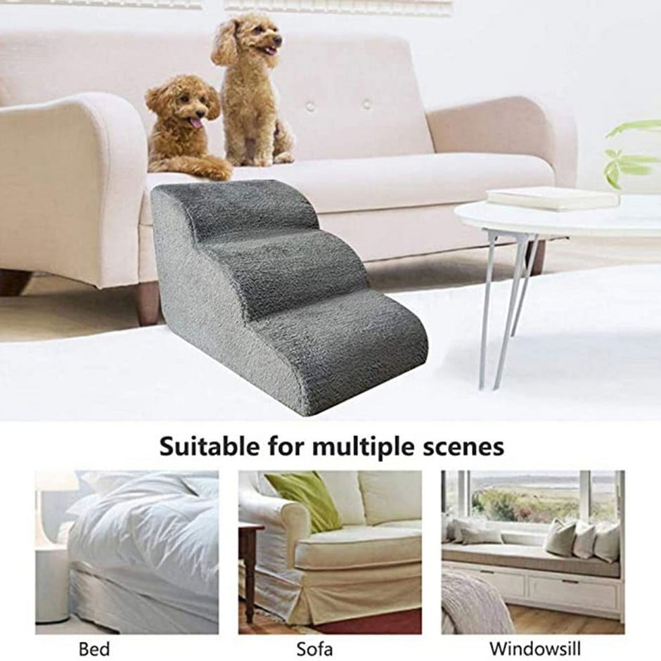 Стълбата за кучета с мемори пяна е създадена специално за малки, възрастни или възстановяващи се домашни любимци, които имат нужда от помощ при качване на легло, диван или друга по-висока повърхност. Благодарение на трите широки и стабилни стъпала с мек пълнеж, Вашият любимец ще се чувства сигурен и защитен при всяко движение.
