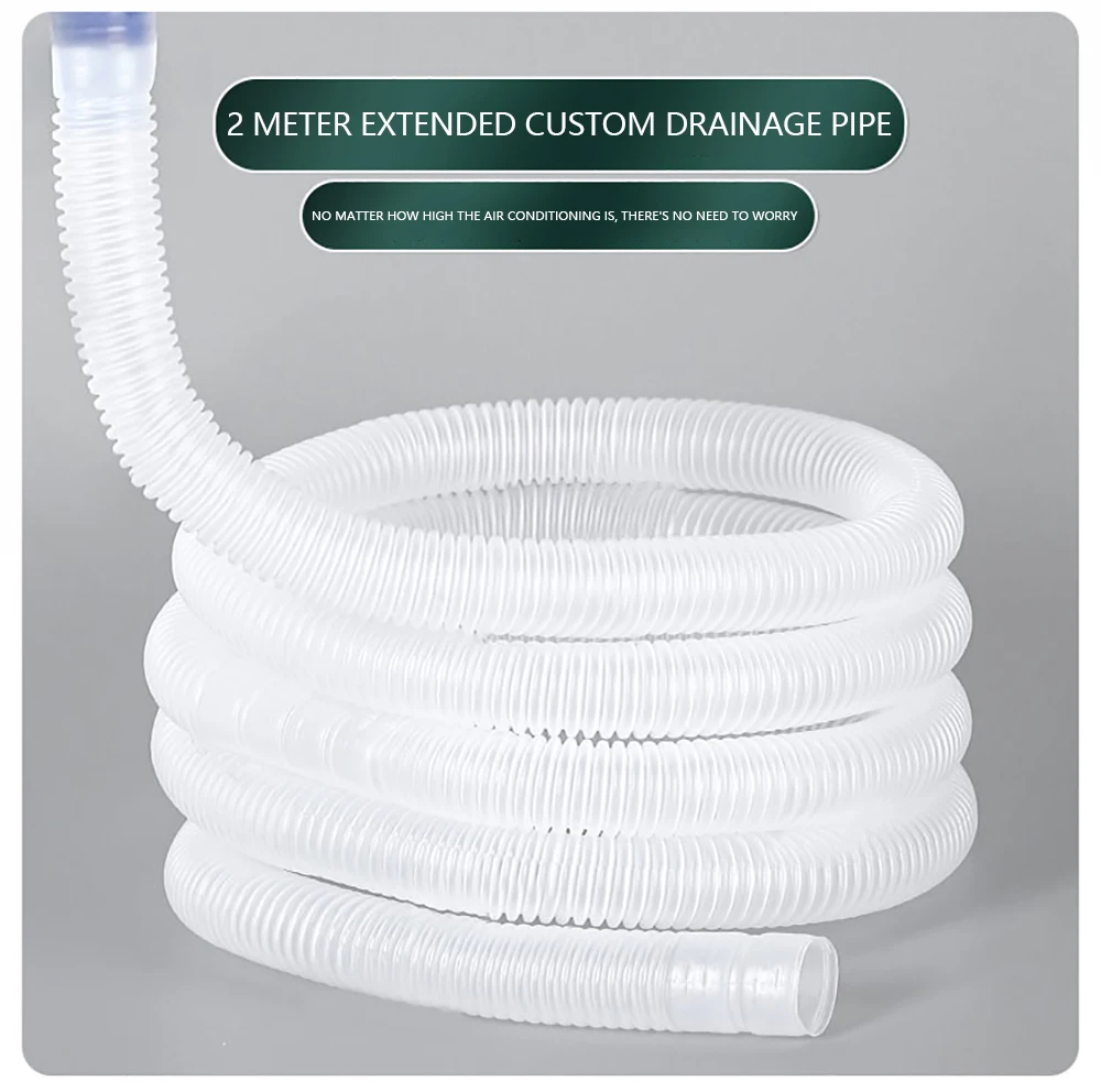 Долната част е проектирана с интегриран отвор за маркуч, а в комплекта е включен гъвкав маркуч с дължина 2 метра, който отвежда мръсната вода директно към съд или канал. Така целият процес на почистване на климатик е чист и безопасен