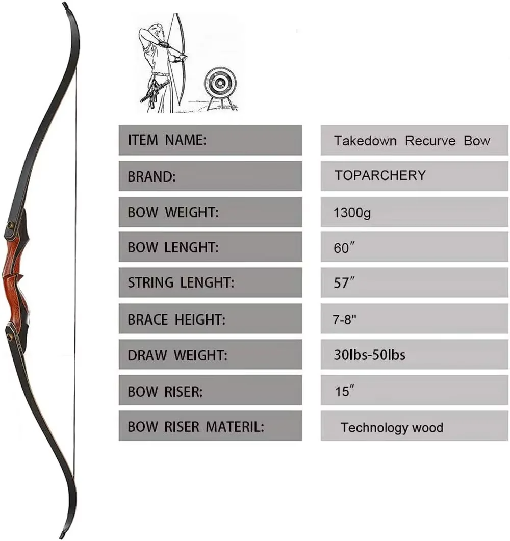 Инструкции за работа с Традиционен лък Toparchery Takedown Recurve Bow 35 lbs