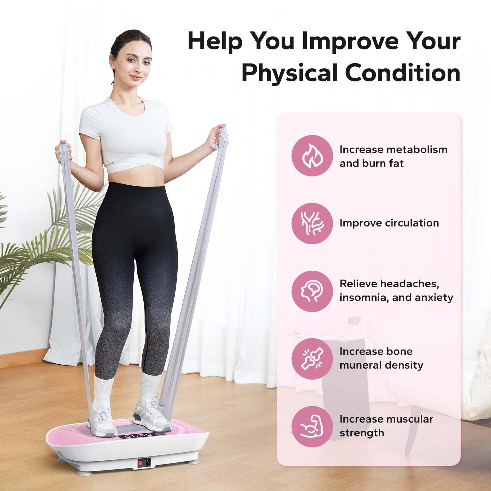 С виброплатформата MERACH CV30 Pro Pink можеш да започнете тренировка, дори без да напускате дома си. Само 20 минути на ден са достатъчни, за да усетите промяната.